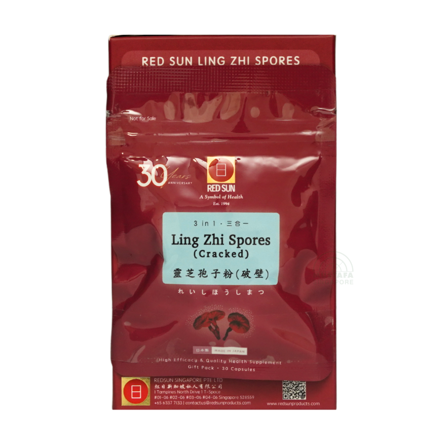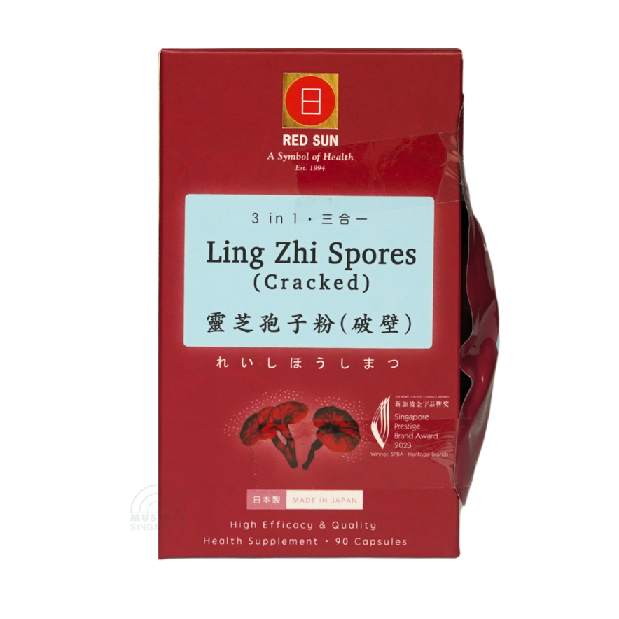 RED SUN 3-in-1 Ling Zhi Cracked Spores is a premium health supplement made in Japan, combining cracked Ling Zhi (Reishi) spores with ginseng extract, grape seed extract, and essential B-group vitamins. This synergistic formula is designed to support the immune system, promote vitality, and enhance overall wellness through superior absorption and bioavailability.