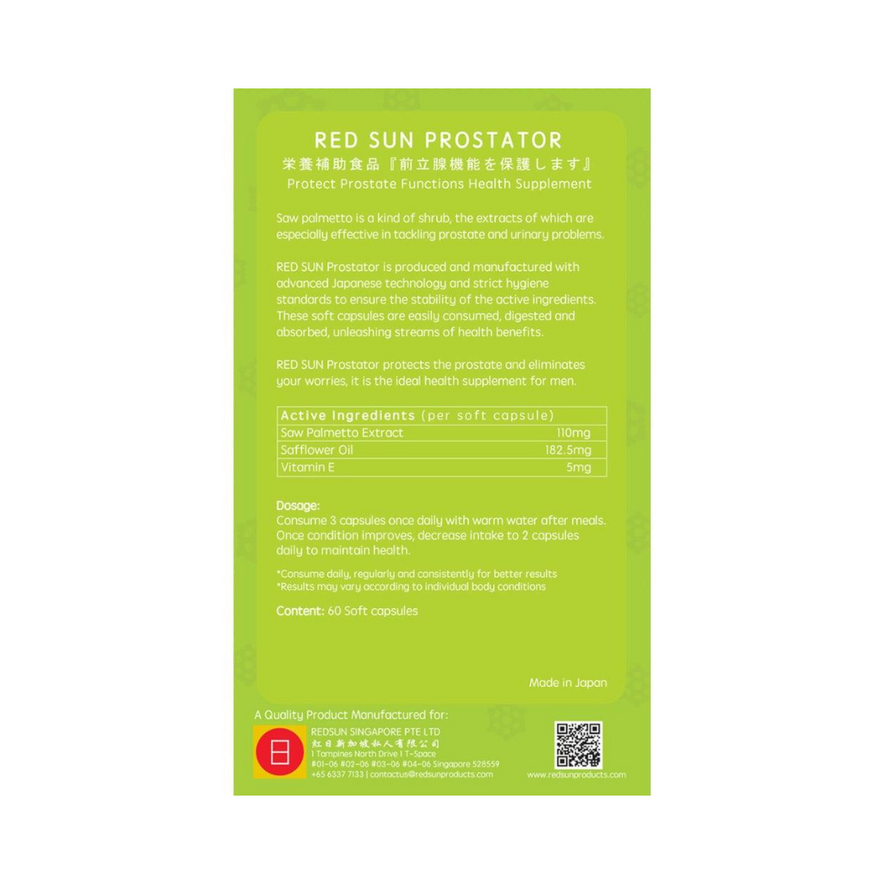 RED SUN Prostator™ Saw Palmetto is a premium supplement designed to support prostate health and alleviate urinary problems in men. Formulated with a potent blend of natural ingredients, it helps maintain healthy prostate function and supports normal urinary flow.