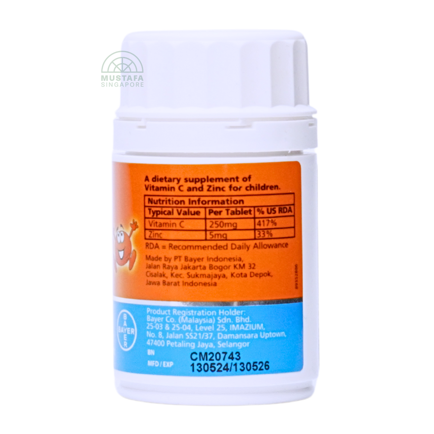 Vitamin C (ascorbic acid) 250mg, Zinc 5mg