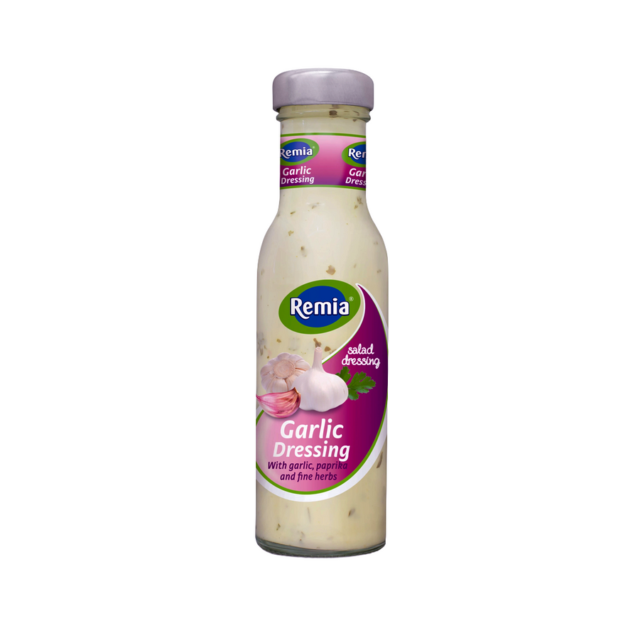 Remia Garlic Dressing 250ml is a creamy and savoury dressing with the rich flavour of freshly chopped garlic and herbs. Smooth and versatile, it is perfect for salads, roasted vegetables, grilled meats, or as a dipping sauce.