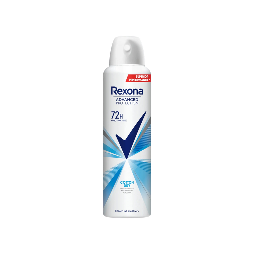 Experience the clean, cottony-fresh feeling of Rexona Women Advance Protection Deodorant Spray Cotton Dry. This lightweight, fast-absorbing antiperspirant spray keeps you dry and odour-free for up to 72 hours with its powerful sweat-fighting formula. Enriched with a cotton-inspired fragrance and powered by MotionSense technology, it activates with every movement to provide continuous freshness. The 0% alcohol, quick-dry formula is gentle on skin and leaves no white marks, making it a perfect everyday deodorant for active women.