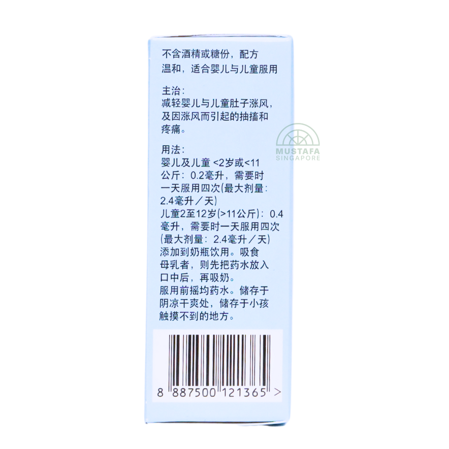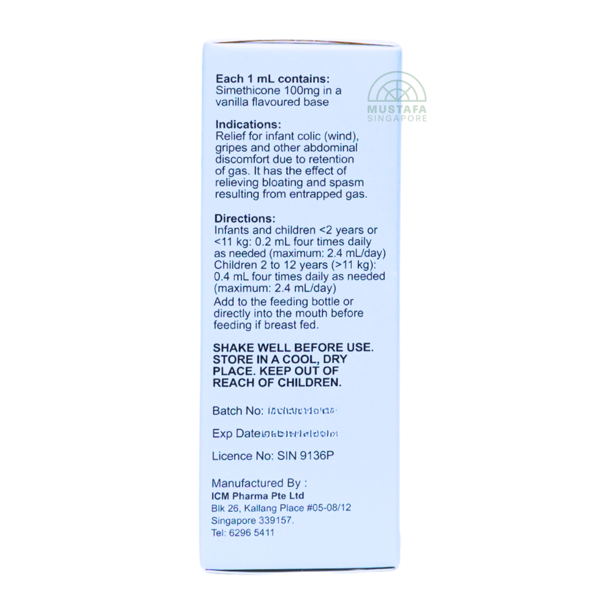 Add 0.5ml to 1ml to the baby’s feeding bottle, or place directly into the mouth before feeding, up to four times a day or as needed.