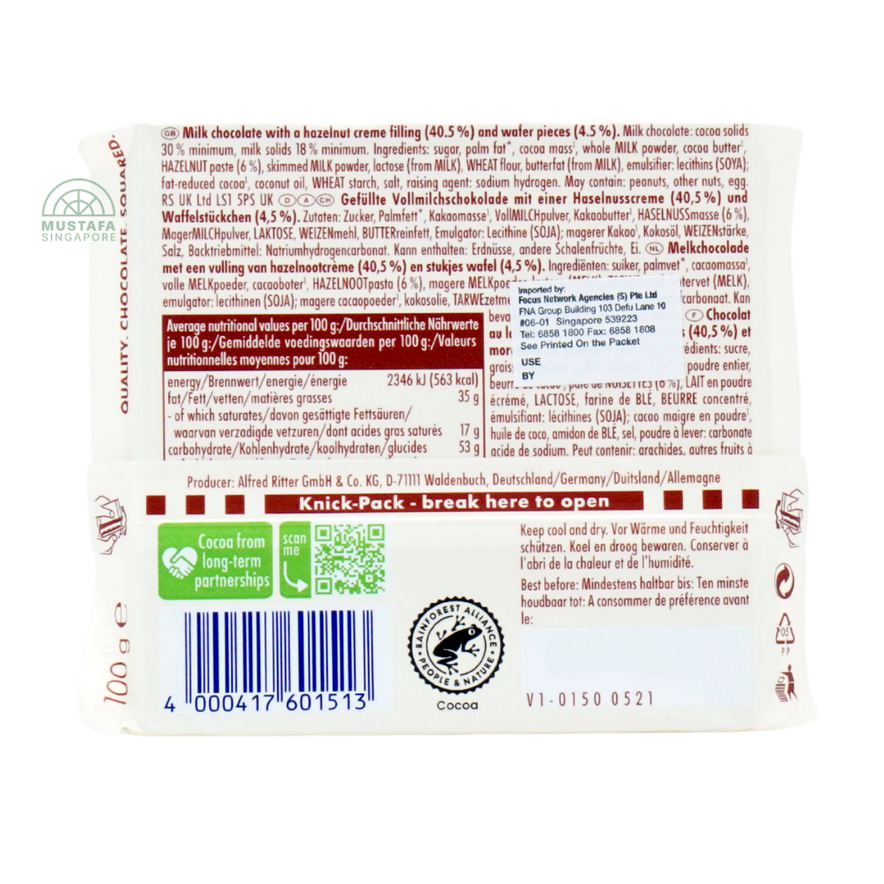 This Ritter Sport bar features Amicelli-style wafer rolls filled with smooth hazelnut cream, wrapped in milk chocolate. Each bite offers layers of crisp wafer and creamy filling. A delightful mix of textures inspired by classic European confections. Perfect for gifting or enjoying with coffee. A unique and flavourful addition to the Ritter Sport range.