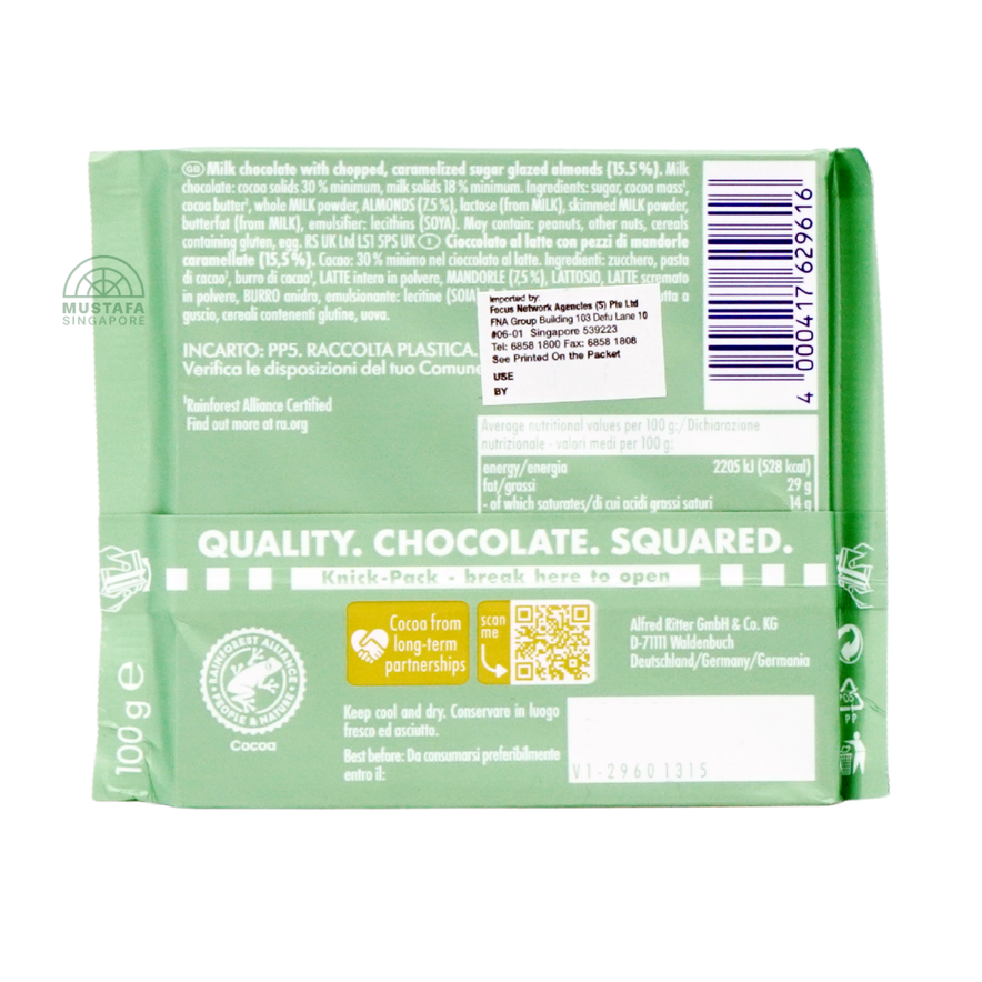 Caramelized Almonds blends crunchy caramel-coated almonds with smooth milk chocolate for a delicious contrast of texture and sweetness. Each bite offers nutty richness enhanced by caramel undertones. Perfect for gifting or indulgent snacking. A satisfying treat for almond lovers. A standout favourite in the Ritter Sport lineup.