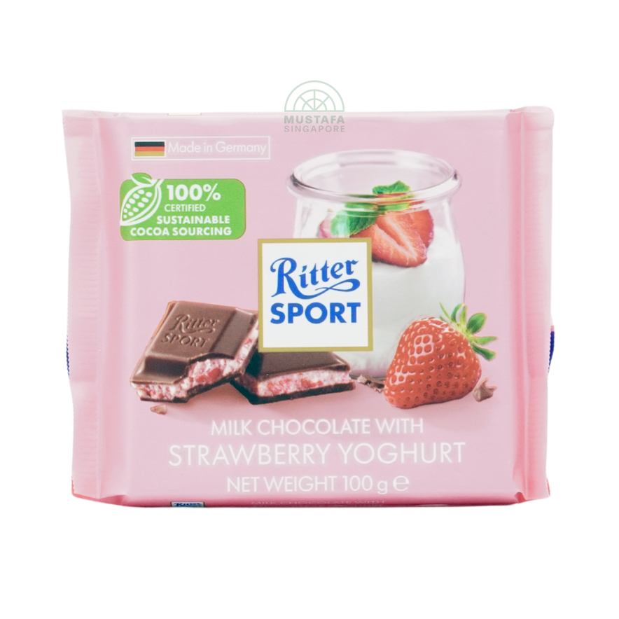 This Ritter Sport bar features a creamy strawberry yoghurt filling wrapped in smooth milk chocolate. The fruity tanginess balances the chocolate's sweetness. Perfect for summer snacking or pairing with tea. A refreshing twist on classic chocolate bars. Beloved by fans of fruity fillings.