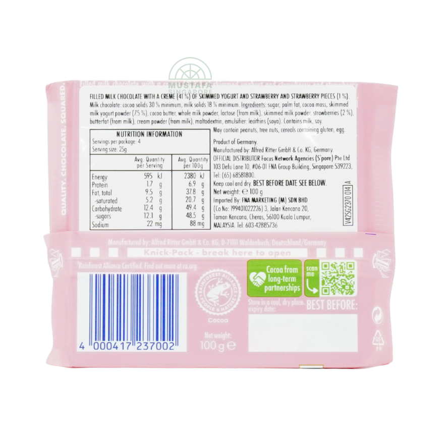 Ritter Sport Milk Chocolate with Strawberry Yoghurt 100g