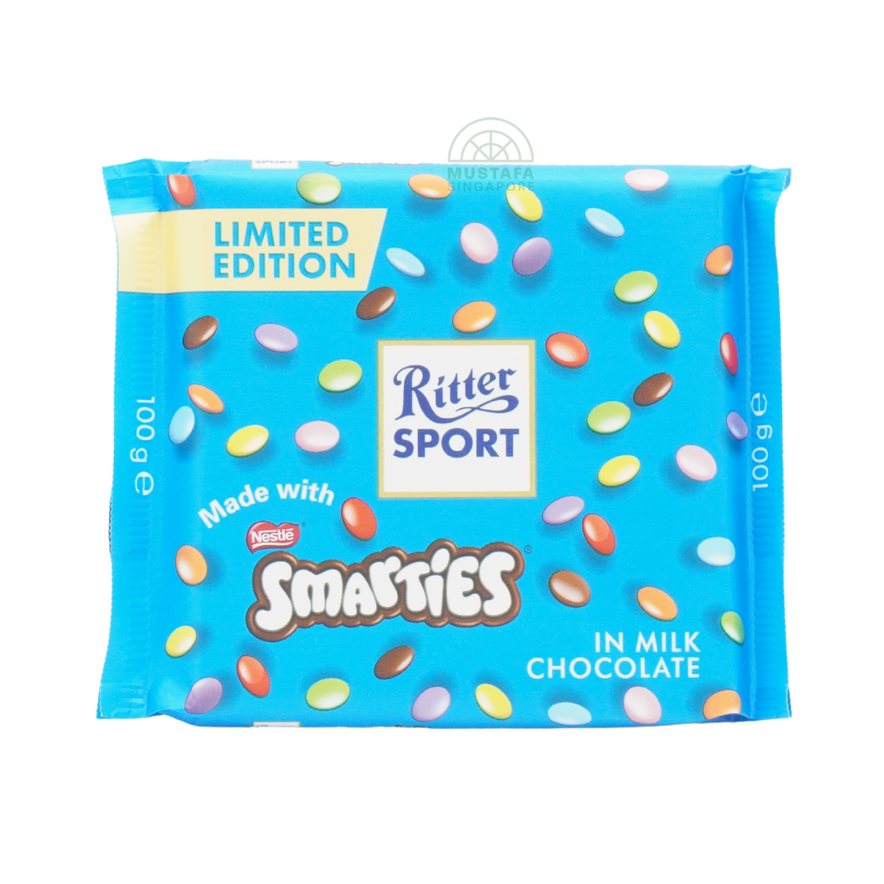 This fun Ritter Sport bar blends smooth milk chocolate with colourful Smarties pieces for a crunchy, playful experience. Each bite combines creamy sweetness with lively candy shells. A favourite among children and nostalgic adults alike. Ideal for casual snacking and sharing. A joyful chocolate bar bursting with colour.
