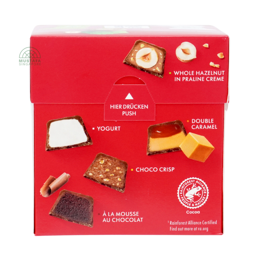 Ritter Sport "Thank You" Choco Cubes offer a curated selection of bite-sized chocolates ideal for gifting. Each cube contains a smooth chocolate shell with delicious fillings including praline, hazelnut cream and yogurt blends. The decorative box enhances its thoughtful message. Great for celebrations, appreciation gifts or sharing moments. A delightful treat full of variety and flavour.