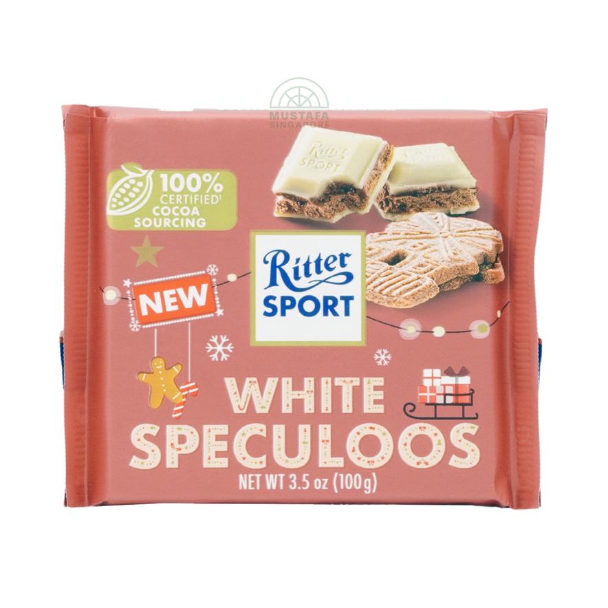 Ritter Sport White Speculoos combines creamy white chocolate with crunchy spiced speculoos biscuit pieces. Each bite delivers sweet, warm spice balanced with velvety smoothness. Perfect for seasonal snacking or enjoying with hot drinks. A unique flavour pairing that highlights festive charm. A deliciously comforting treat.