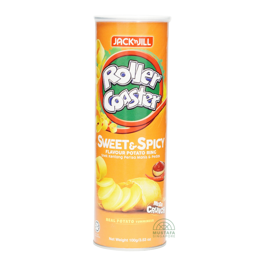 Dehydrated potato, potato starch, vegetable oil (palm olein), tapioca starch, sweet and spicy seasoning (contains sugar, spices powder [chili, onion, garlic, pepper], salt, yeast extract, hydrolyzed vegetable protein, vegetable powder), permitted flavor enhancers (monosodium glutamate [E621], disodium 5'-ribonucleotides [E635]), food conditioners (anticaking agent [silicon dioxide [E551]], artificial sweetener [aspartame [E951]]), and flavoring substances.