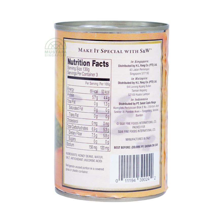 S&W Select Kidney Beans are made from carefully selected kidney beans, cooked and packed to retain their natural flavour and texture. Perfect for chilli, soups, salads, and stews, they are both nutritious and convenient.
