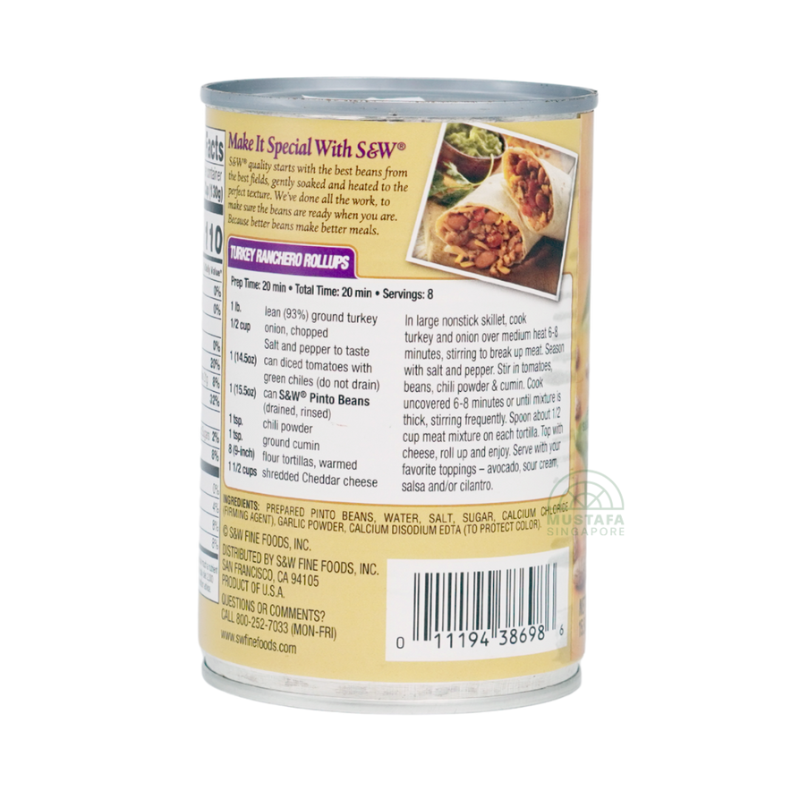 S&W Select Pinto Beans are made from premium pinto beans, cooked and packed to preserve their natural flavour and creamy texture. A staple in Mexican cuisine, they are ideal for soups, stews, refried beans, and burrito fillings.