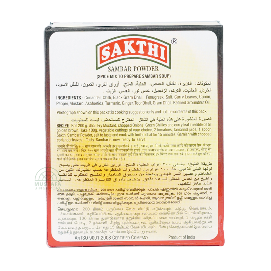 Make authentic South Indian sambar easily with Sakthi Sambar Powder 200g. A blend of premium spices gives your lentil stew rich flavor and aroma.