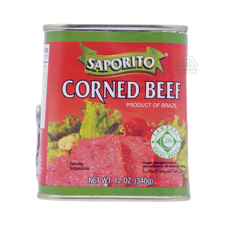Saporito Corned Beef 340g is a ready-to-eat canned beef made from seasoned, finely minced meat. Savoury and hearty, it can be served with rice, bread, or added to stir-fries, pasta, and breakfast dishes.