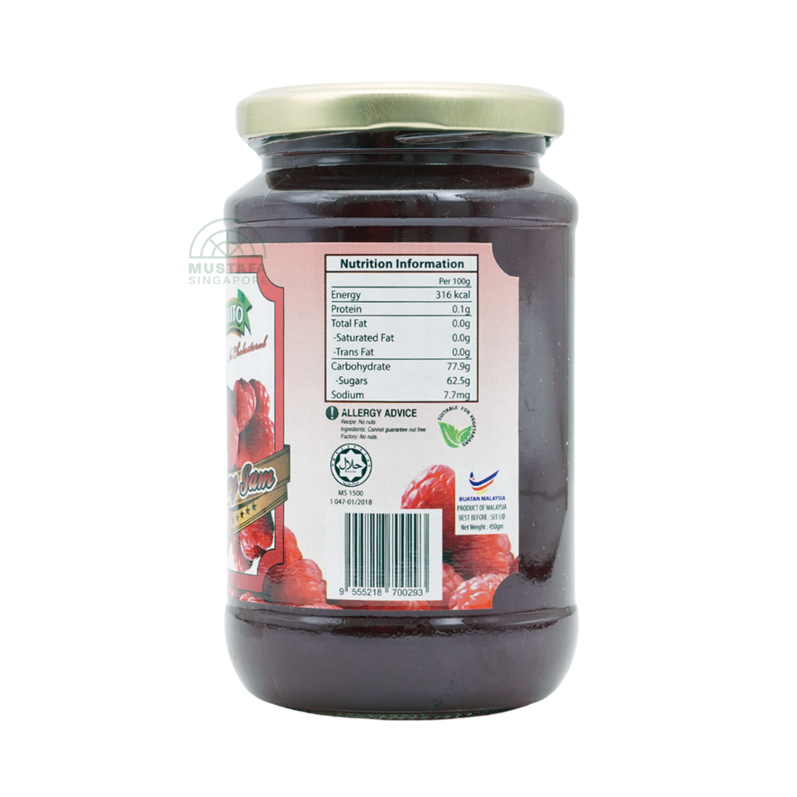 Saporito Raspberry Jam 450g is a vibrant, fruity spread with a balance of sweetness and tartness. It is perfect for toast, desserts, or as a filling in baked recipes.