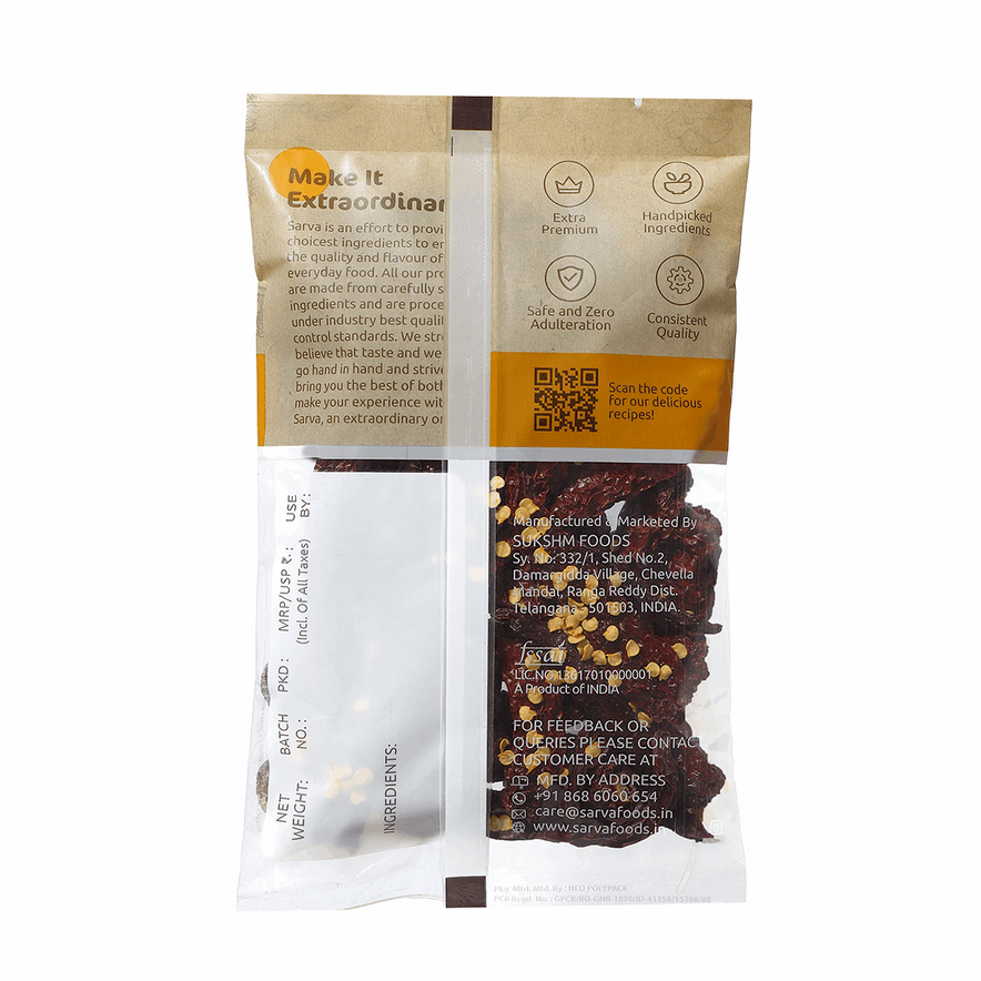 Sarva Kashmiri Chilli (Stemless) gives vibrant colour and mild spice, perfect for rich gravies and sauces.