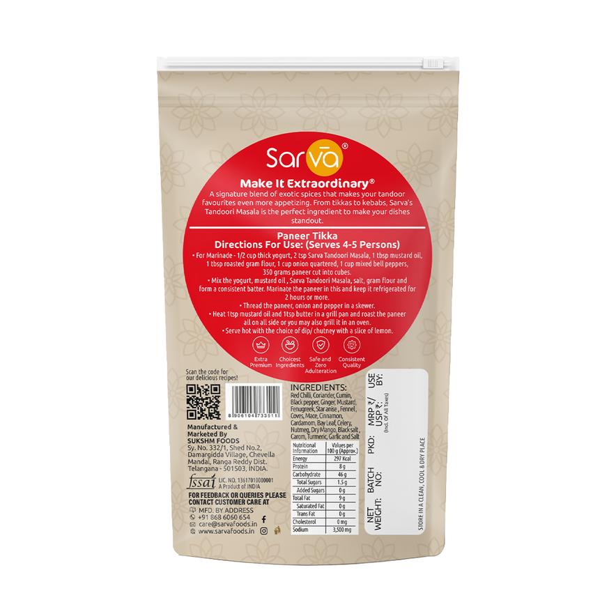 Sarva Tandoori Masala brings smoky, aromatic flavours to grilled meats, paneer, and vegetables.