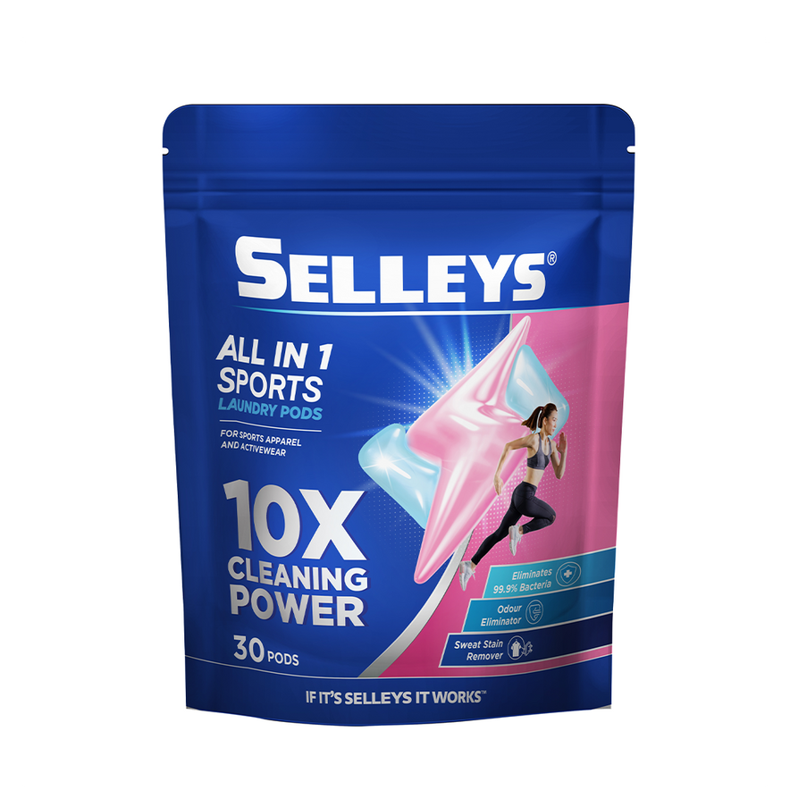 Selleys All in 1 Sports Laundry Pods are specially designed for activewear. They remove sweat, odour, and tough stains while protecting technical fabrics.
