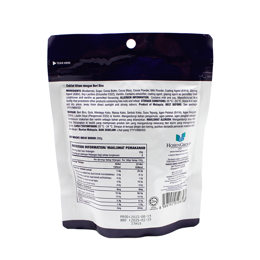 Sincero Premium Dark Chocolate Blueberries 200g combine juicy dried blueberries coated in rich dark chocolate for a delightful balance of sweet and tart flavours. Crafted with quality cocoa and real fruit, these indulgent bites are perfect as a snack, gift, or after-meal treat.