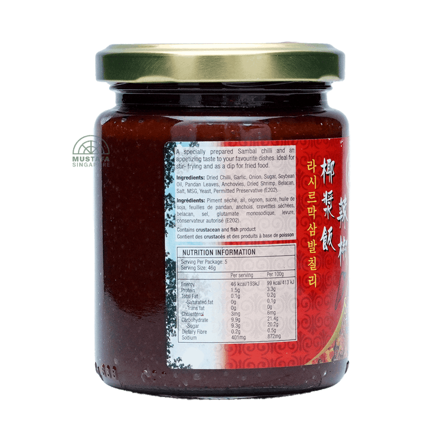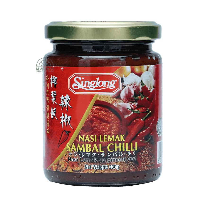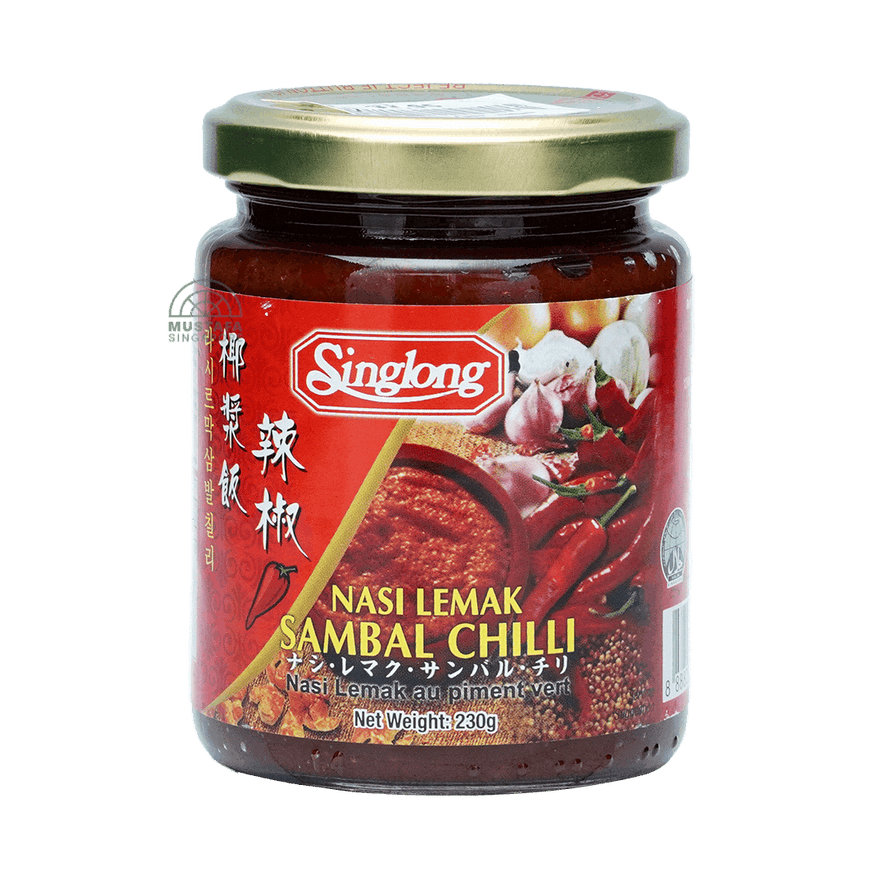 A spicy sambal made specially for nasi lemak. It features chillies cooked with garlic, shallots, belacan and sugar to produce a rich, caramelised paste that pairs perfectly with coconut rice.