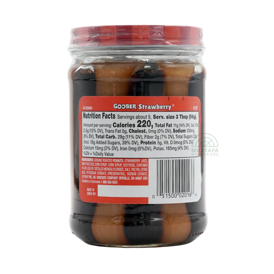 Smucker's Goober Strawberry combines smooth peanut butter and strawberry jelly in one jar for a fun, flavorful spread. Perfect for sandwiches, snacks, or quick energy bites.