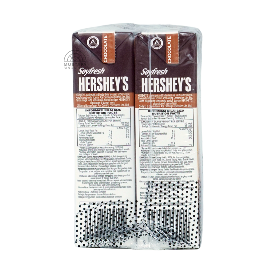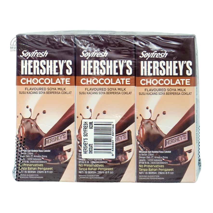 Enjoy the rich and creamy taste of Soyfresh Hershey's Chocolate Flavoured Soya Milk. Crafted with Hershey's chocolate ingredients, this soy-based beverage offers a smooth, dairy-free alternative to traditional chocolate milk. It is lactose-free, cholesterol-free, and contains no preservatives, making it a wholesome choice for those seeking a delicious and healthier drink option.