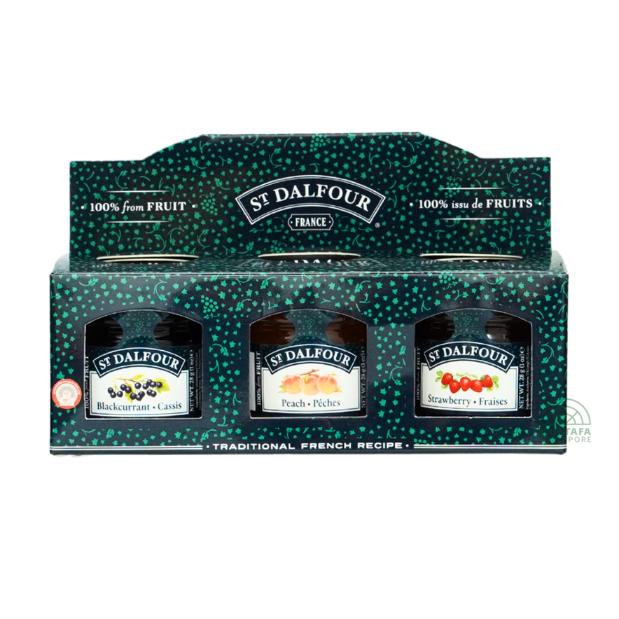 Enjoy the goodness of St. Dalfour in a convenient mini pack! This set includes three assorted 28g jars of St. Dalfour’s famous fruit spreads, crafted in France using traditional methods. Made with high fruit content and naturally sweetened with fruit juice concentrate, these spreads contain no refined sugar, preservatives, or artificial flavors. Perfect for breakfast, tea time, travel, or gifting.