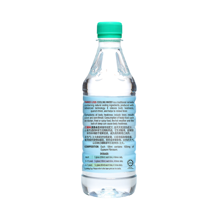 Three Legs Cooling Water provides fast relief from body heat, mild fever, and sore throat caused by heatiness. Formulated from natural minerals and traditional herbs, it helps restore internal balance and cool the body effectively.