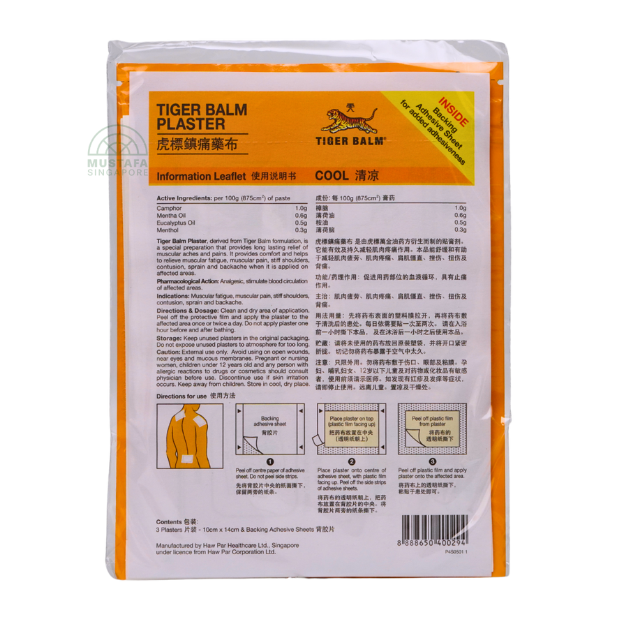 Tiger Balm Plaster Cool is a cooling pain relief patch specially formulated to provide effective relief for muscle aches and pains. Designed for long-lasting comfort, the hydrogel patch adheres securely to the skin and delivers a cool sensation to soothe discomfort in affected areas.