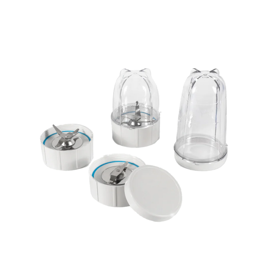 This product contains 1x Base Motor (Electric Blender Body), 3 Different Cutters for Different Functions, 3 Blending Cups (max capacity: 1000ml, 450ml and 200ml), 1 Blender Cup Lid, 2 Small Cup Lids, 1 Instruction Manual