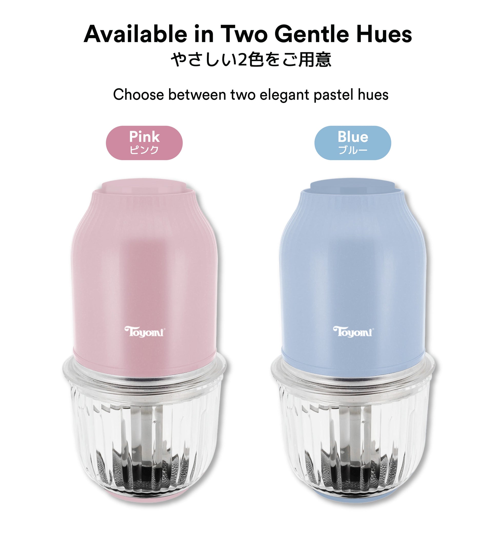 Transform your meal prep with the TOYOMI Electric Mini Food Chopper EC 7037—a compact powerhouse perfect for chopping, mincing, and pureeing in just one touch. Featuring a 300ml thick borosilicate glass bowl, a pure copper wire motor, and premium triple-layered stainless steel blades, it's built for precision, safety, and effortless cleaning. Equipped with a food-grade splash-proof lid and non-slip mat for stability, this stylish chopper (available in Pink and Blue) combines durability and convenience in every use—making it an ideal companion for quick and stylish kitchen prep.