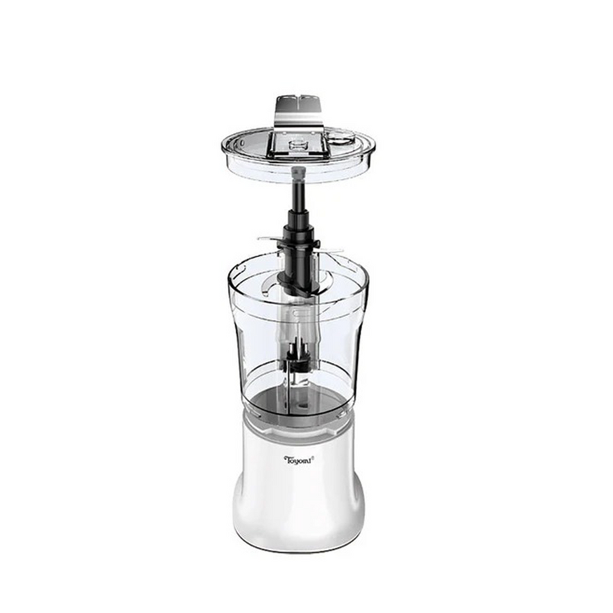 The Toyomi Electric Smart Chopper EC-716 is a versatile kitchen appliance designed to simplify food preparation. Equipped with a powerful 1000W motor, it effortlessly chops, dices, and slices a variety of ingredients, including vegetables, fruits, and herbs. The chopper features a quad-blade system with two types of blades, allowing for different chopping styles to suit various culinary needs. Its elegant design with plastic injection housing and a stylish switch assembly on the top cover adds a modern touch to any kitchen. The one-touch control ensures easy operation, while the oil drip feeder design enables the addition of oil during processing for recipes that require emulsification. The detachable parts make cleaning convenient, and the safety features provide peace of mind during use.