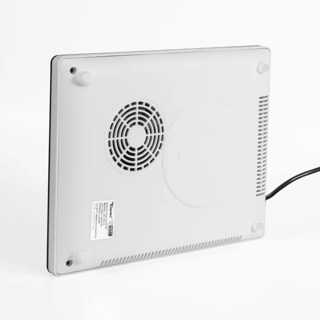 This induction cooker has a pan presence detector which detects the presence of a vessel on the base. In addition, it also includes an overheating protector that will turn off the heating elements in case they are left on and there is no pot in place, or if the temperature is set too high