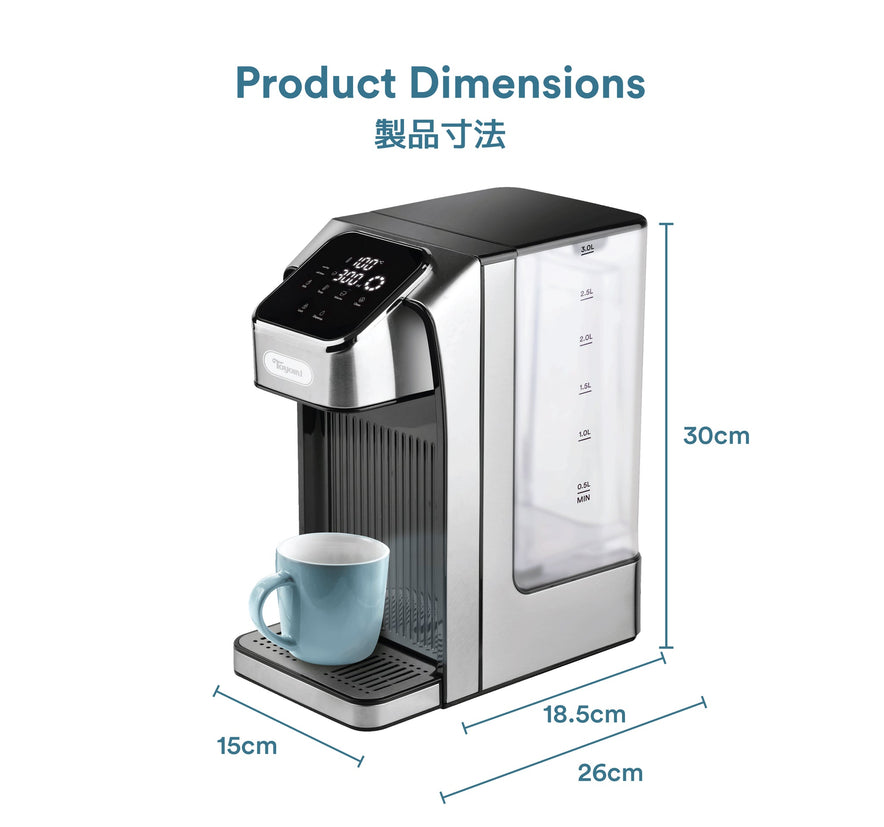 The Toyomi 3L InstantBoil Filtered Water Dispenser FB 8830F offers rapid hot water delivery with 9 preset temperatures and 8 dispensing capacities, catering to various beverage needs. Its intuitive touch controls and large display ensure user-friendly operation. The dispenser features a removable 3L water tank with an ergonomic handle for easy refilling, a secure tank lid to maintain water purity, and a removable water tray to collect spills. Equipped with a 5-stage ultrafiltration system, it effectively removes contaminants such as microplastics, chlorine, lead, and pesticides, ensuring clean and safe drinking water. Additionally, the built-in descaling function simplifies maintenance by preventing limescale buildup.