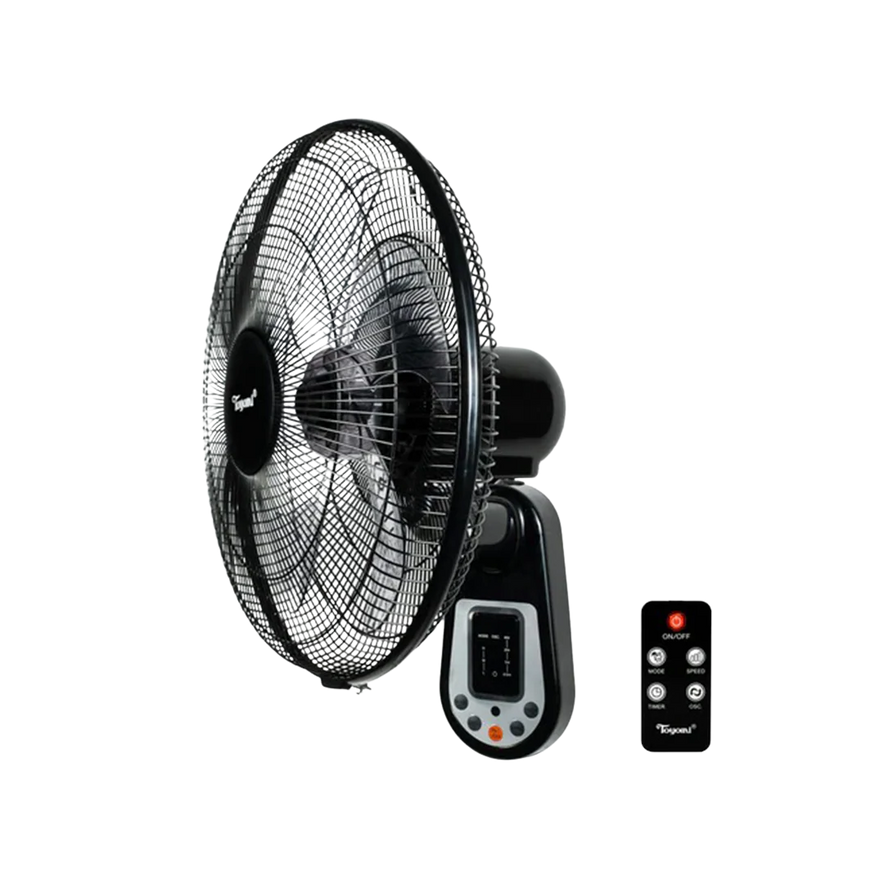 Stay cool and comfortable with the Toyomi 16" Wall Fan FW 4093R. Designed for modern living spaces, this wall-mounted fan offers powerful air circulation with its 5-blade design and 90° oscillation. Customize your breeze with 3 speed settings and enjoy added convenience with the included remote control. Features a 7.5-hour timer and natural & sleep wind functions, ideal for bedrooms and living rooms. Available in sleek black and white finishes.