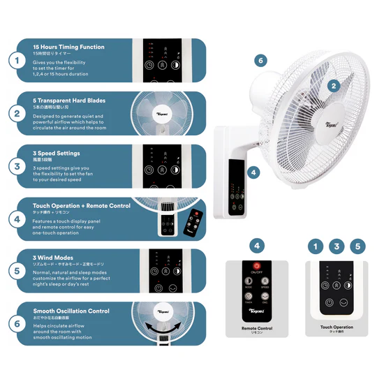 Toyomi Wall Fan with Remote 12" FW-3614R