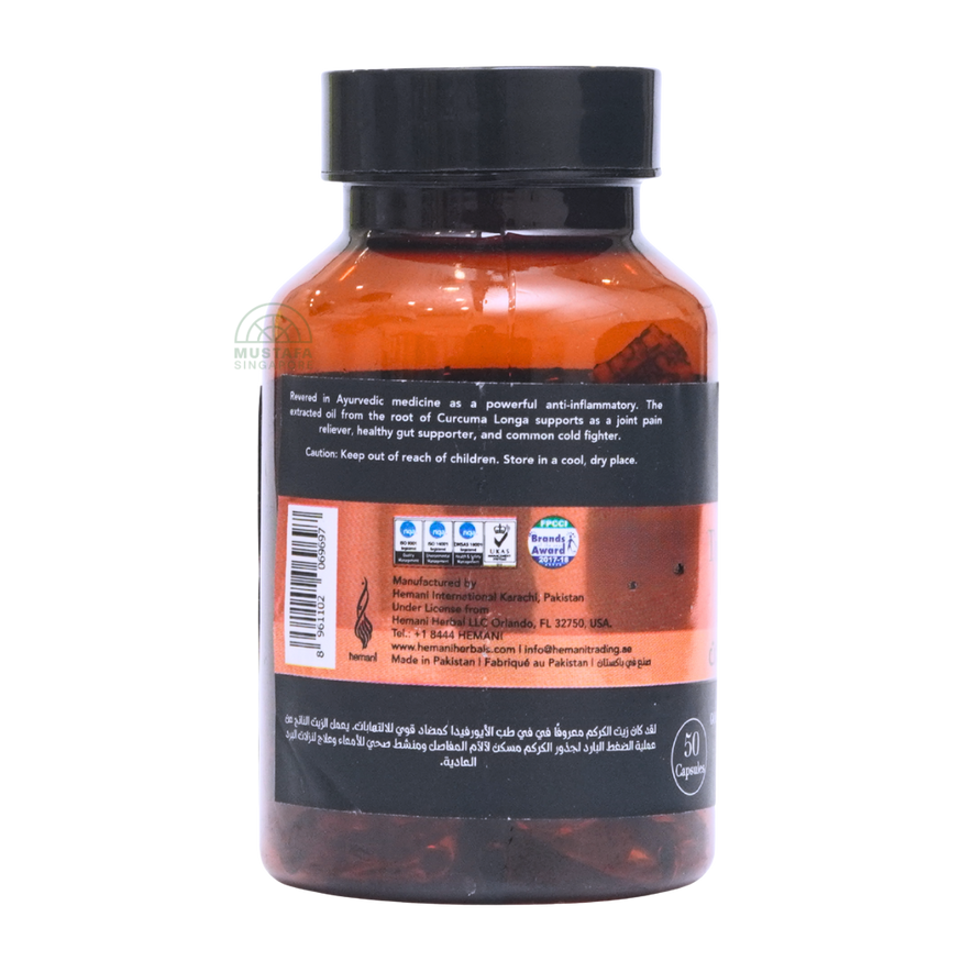 Hemani Herbal Oil Capsule – Turmeric is a dietary supplement formulated to support overall health and well-being. Each capsule contains turmeric oil, known for its potential to enhance energy levels, improve cognitive function, and bolster the immune system. This product is made with 100% natural herbal oils and is both vegan and gluten-free.