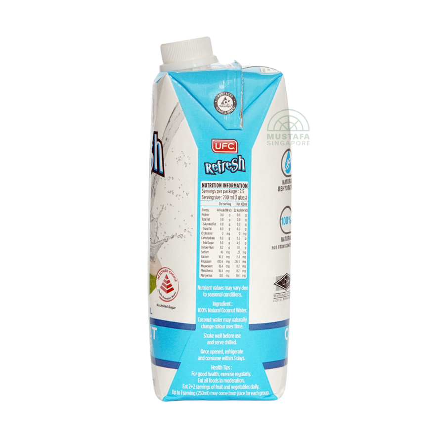 UFC Refresh 100% Natural Coconut Water is a hydrating, all-natural beverage made from fresh, young green coconuts. With no added sugar, preservatives, or flavorings, it's the perfect way to stay refreshed and rehydrated - just as nature intended.
