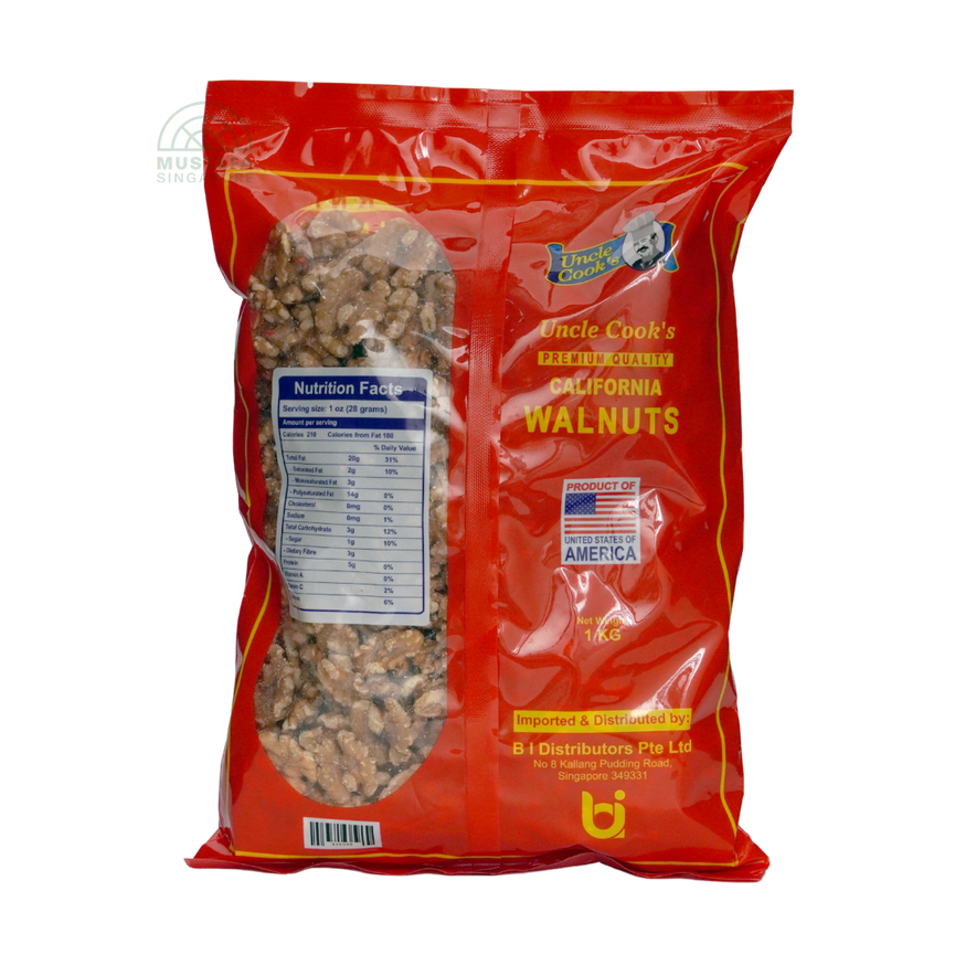 Uncle Cook's California Walnuts are premium-quality nuts sourced from the sunny orchards of California. Known for their rich, nutty flavor and satisfying crunch, these walnuts are perfect for snacking, baking, or adding a nutritious boost to your meals. Whether you're making a classic walnut cake, tossing them into a salad, or enjoying them straight from the pack, Uncle Cook's walnuts offer versatility and taste. Packed in a convenient 1kg resealable bag, they ensure freshness and convenience for everyday use.
