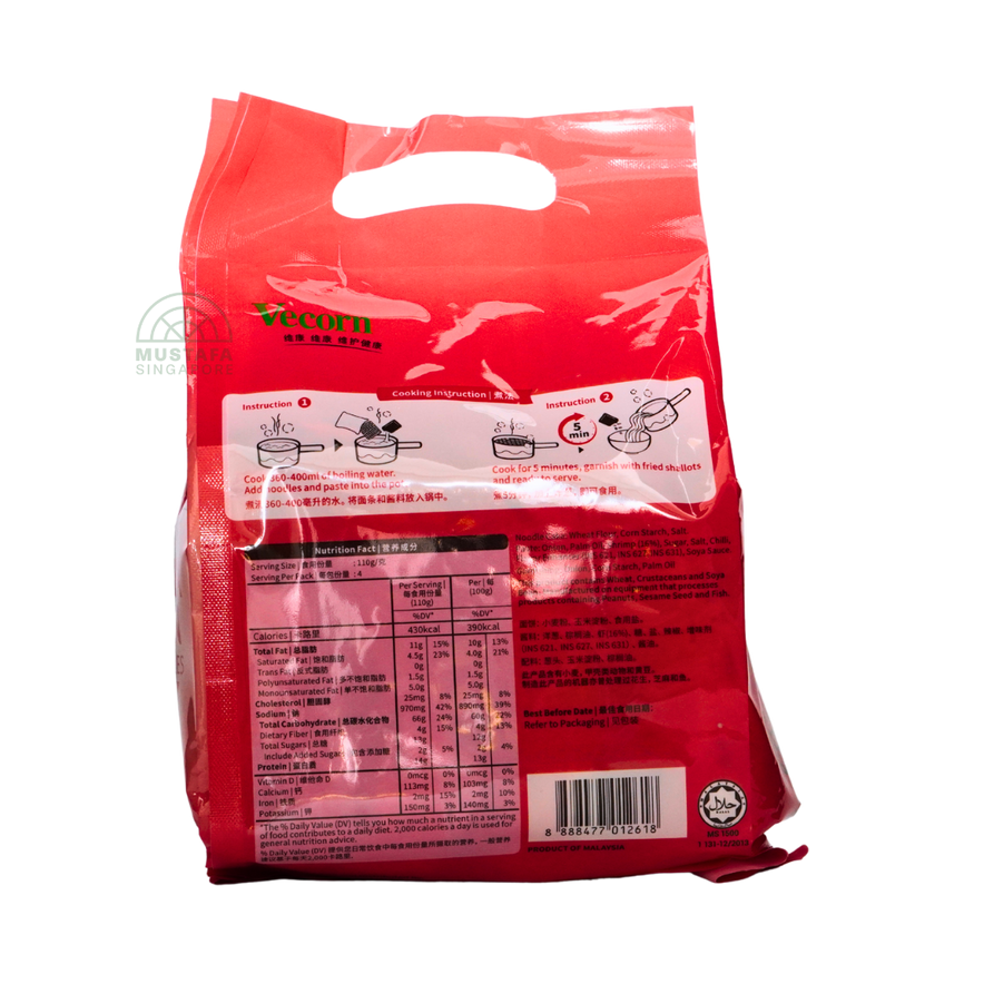 Vecorn Spicy Sakura Prawn Soup Noodles deliver a bold, aromatic prawn flavor inspired by traditional Southeast Asian recipes. These non-fried, air-dried instant noodles come with richly flavored prawn paste and fried shallot topping—ready in just five minutes for a deliciously savory meal.