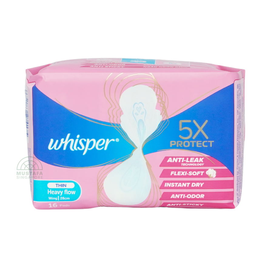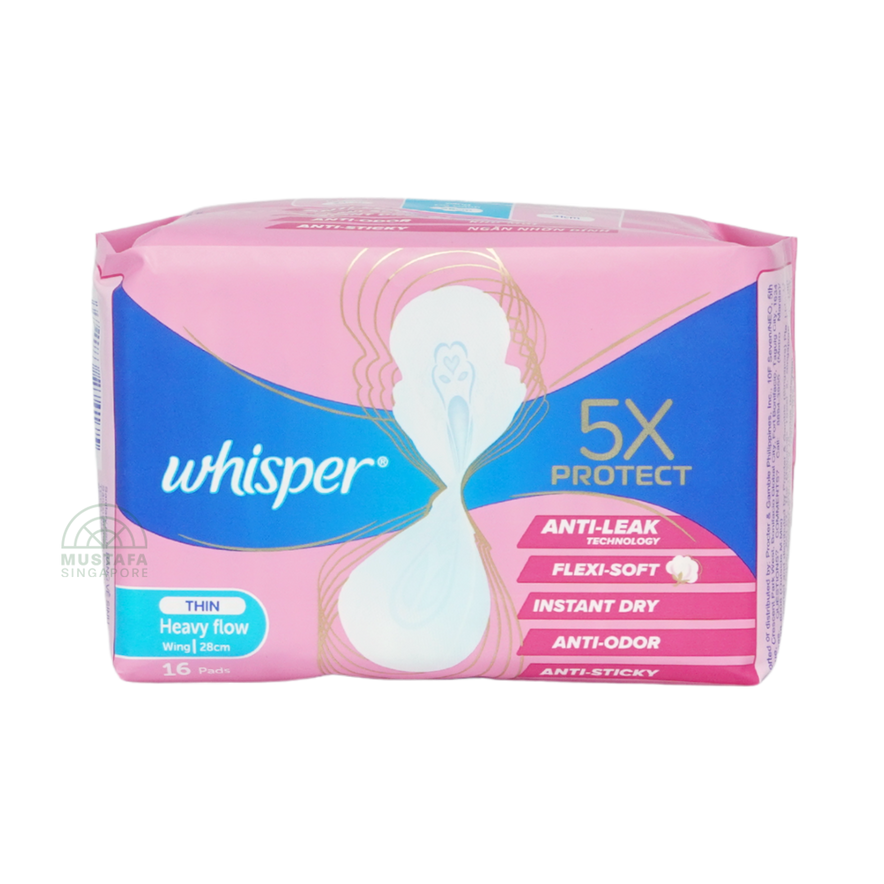 Whisper 5x Protect Thin Heavy Wings (28 cm) delivers high-performance protection for heavy flow days and nights. Its instant absorbent technology and magic gel beads provide three-times-faster absorption while staying light. The thin, breathable cotton top layer, flexible core and extended wings ensure a comfortable, secure fit.