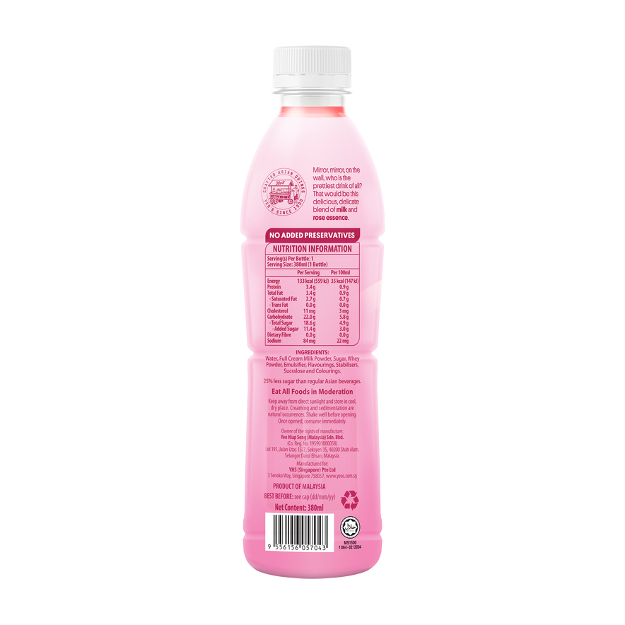 Indulge in the fragrant sweetness of Yeo's Bandung Milk Drink 380 ml, a smooth and creamy blend of milk and rose syrup that delivers classic Malaysian flavour in every sip. Lightly floral and perfectly sweet, it's a comforting drink for any occasion.