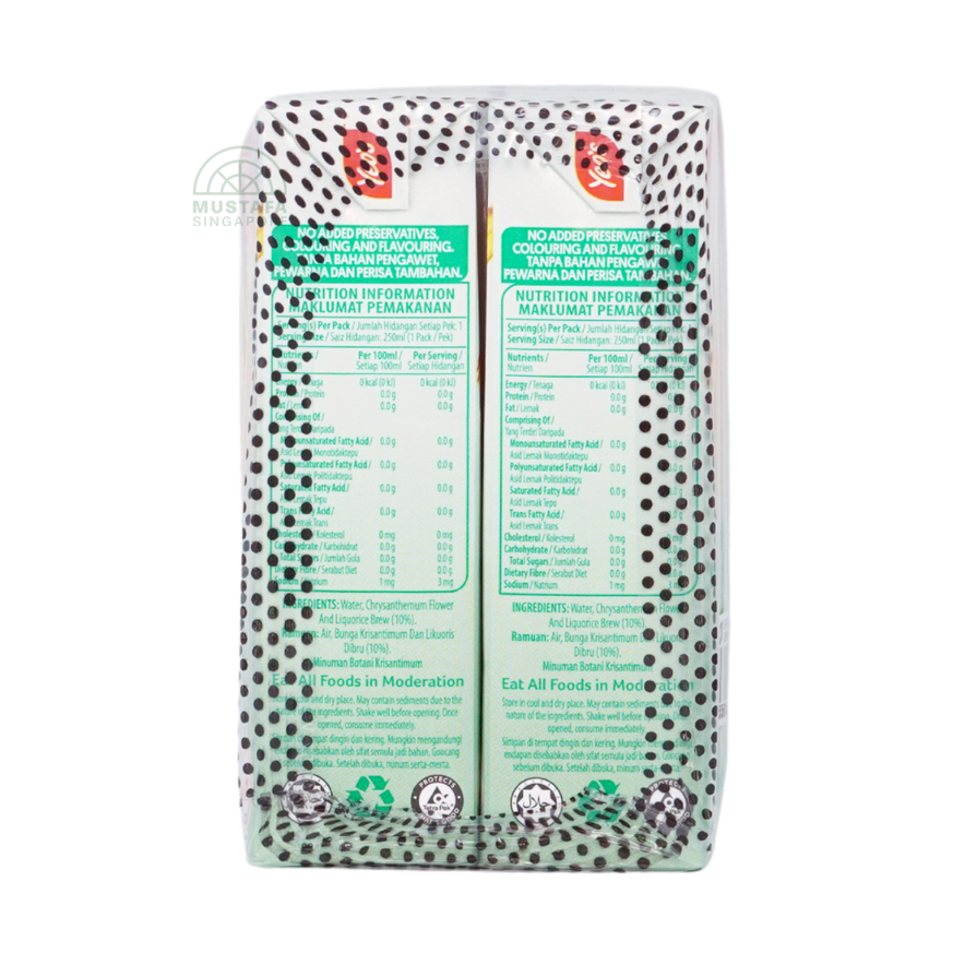 Experience the delicate floral essence of Yeo's Chrysanthemum Tea No Sugar, a traditional Asian beverage that offers a soothing and refreshing experience without added sweetness. Crafted from chrysanthemum flowers and liquorice extract, this tea provides a naturally sweet taste, making it a perfect choice for those seeking a light and aromatic refreshment. Ideal for pairing with local dishes or enjoying on its own, Yeo's Chrysanthemum Tea brings a touch of tradition to your daily routine.