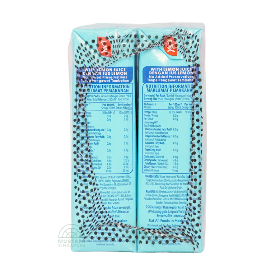 Indulge in the classic taste of lemon tea with Yeo's Lemon Tea Drink (Less Sugar). This beverage combines the bold flavor of black tea with the zesty kick of lemon, providing a refreshing and less sweet option for tea enthusiasts.