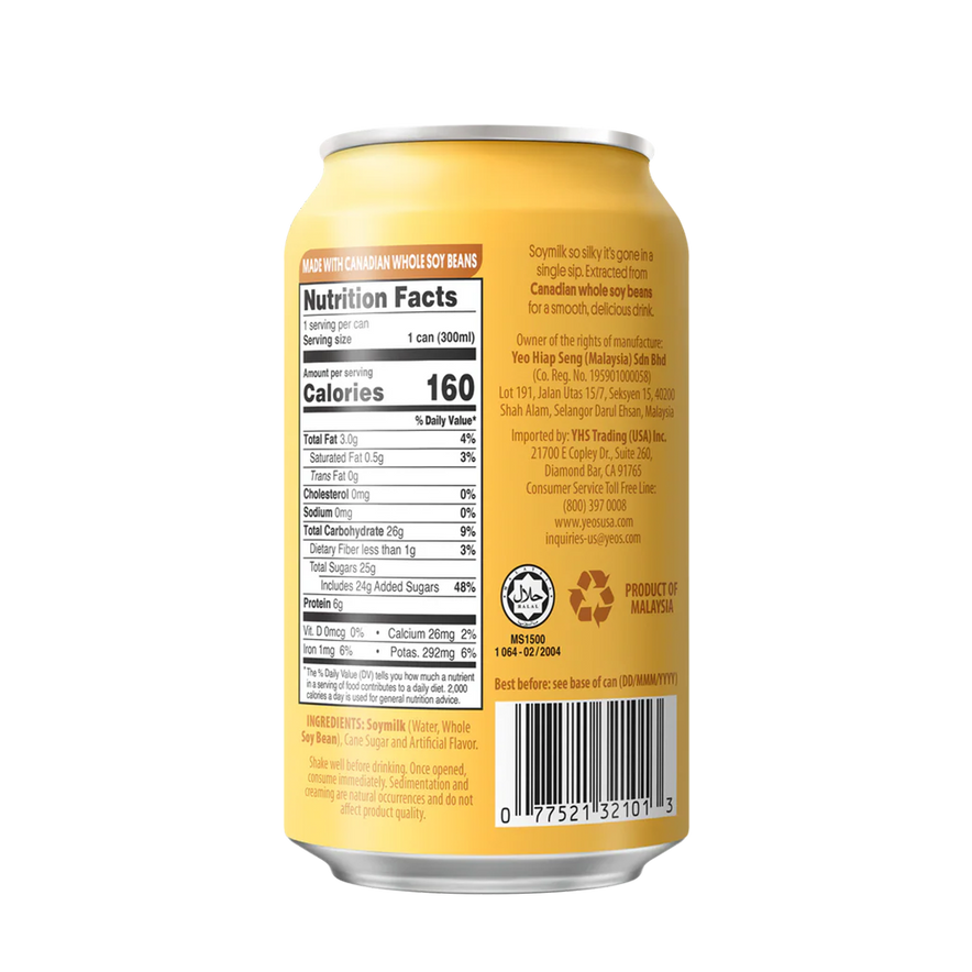 Enjoy the smooth, nutty taste of Yeo's Soy Milk 300 ml, made from high-quality soybeans for a creamy, nutritious, and dairy-free beverage rich in plant protein and natural goodness.