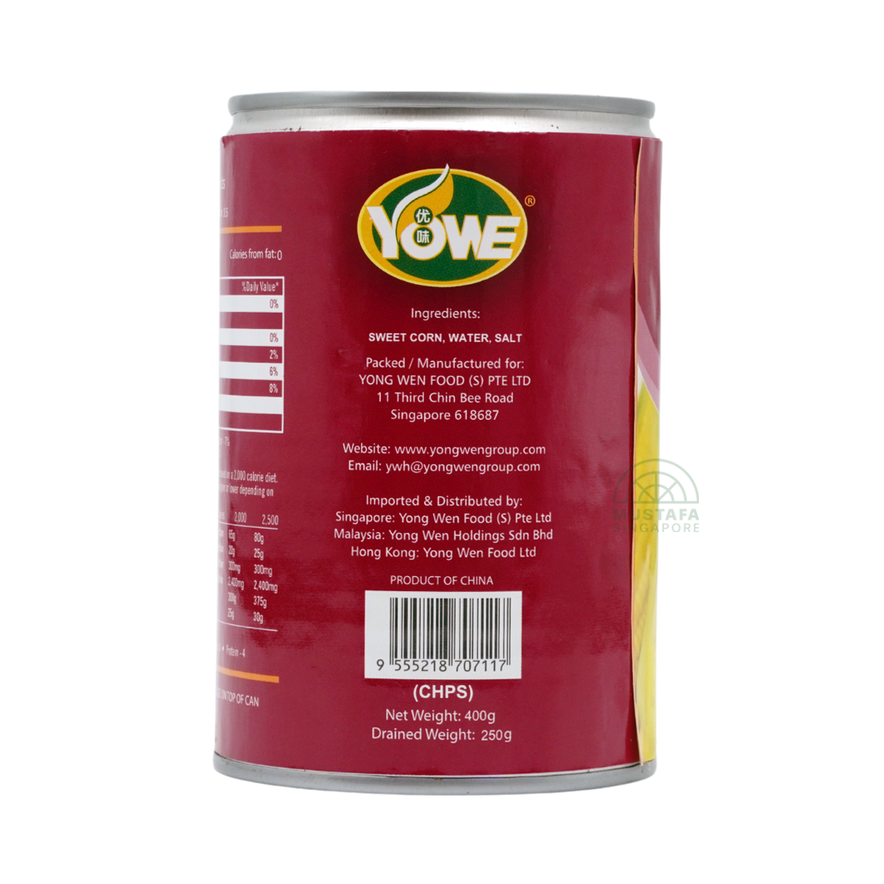 YOWE Sweet Corn Kernel 425g contains whole, tender sweet corn kernels preserved for freshness. Perfect for salads, stir-fries, soups, and side dishes.