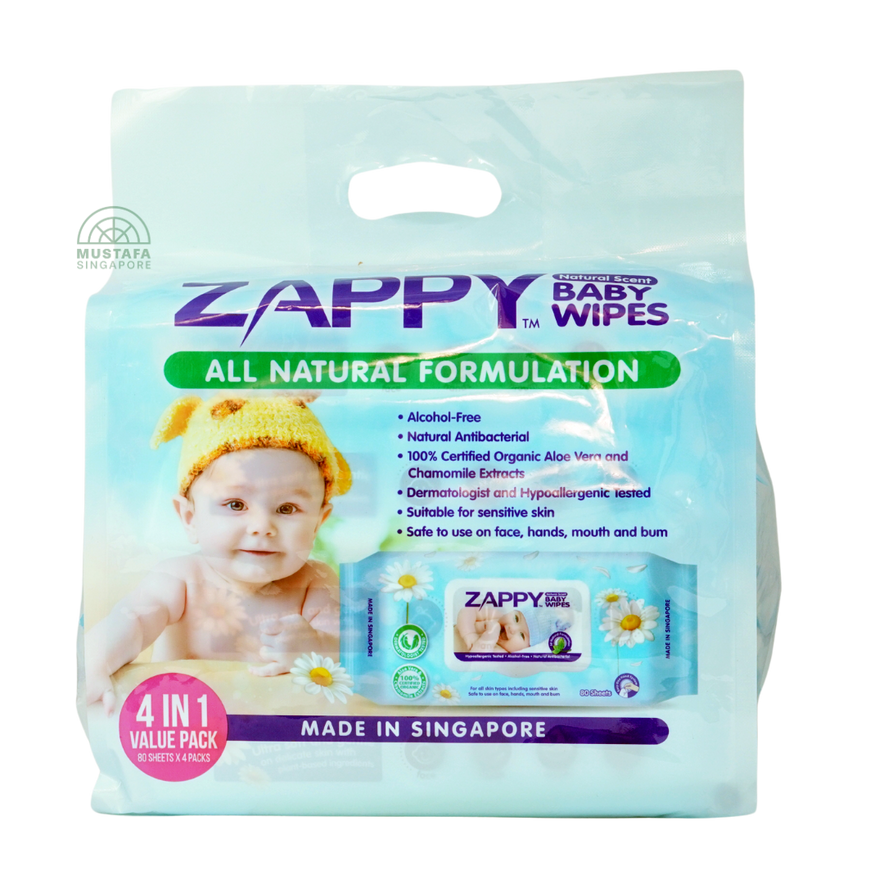 Zappy Baby Pure Wipes Natural Scent 4x80s