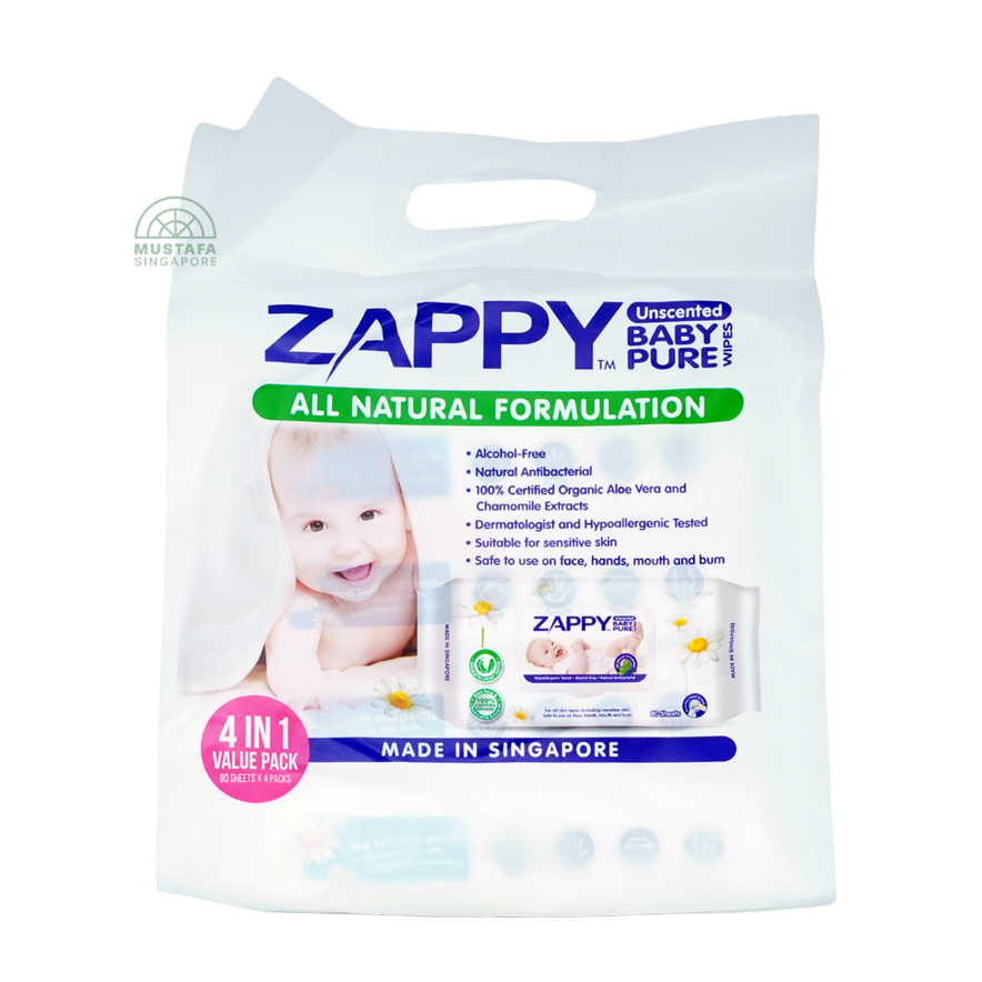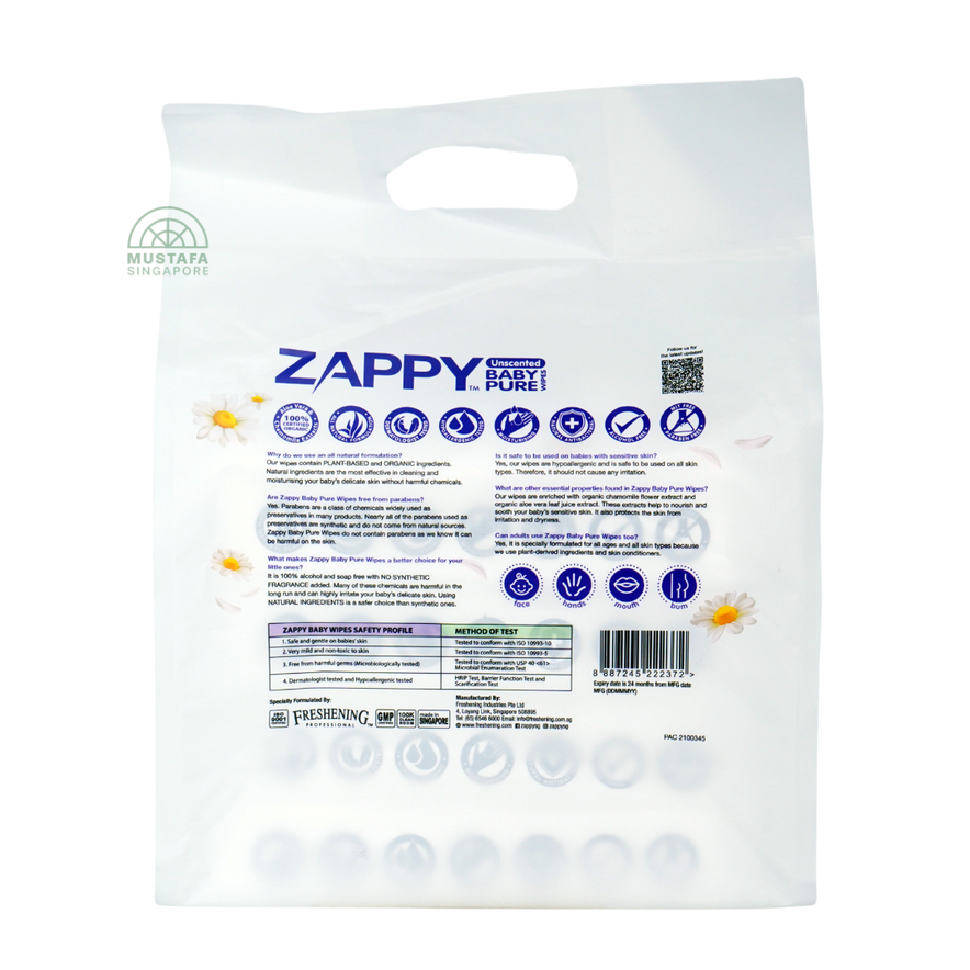 Gentle unscented baby wipes for sensitive skin, dermatologically tested and safe.