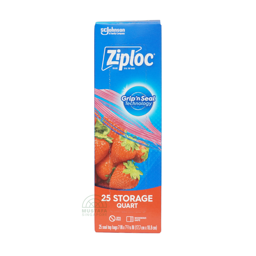 Organize your kitchen and household essentials with Ziploc® Storage Quart Bags. Designed for versatility, these bags are perfect for storing snacks, organizing small items, or keeping your food fresh. Each pack contains 25 bags, measuring 17.7 cm x 18.8 cm, making them ideal for various storage needs.